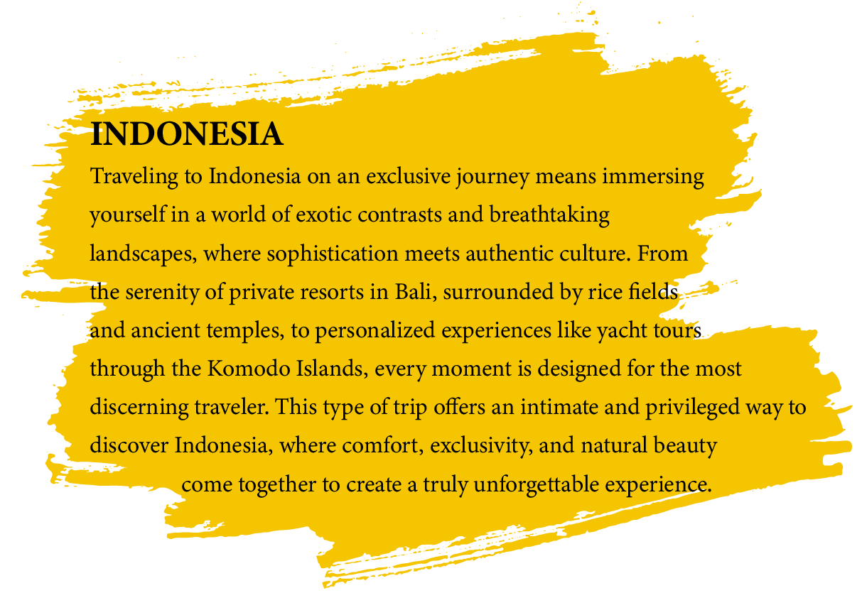 Imagine waking up in a hidden villa nestled among Bali’s rice terraces, where the scent of incense and the distant chants from a temple mark the beginning of a day tailored just for you. As a private chef prepares your breakfast, your butler informs you that today you’ll sail on a luxury yacht to the Komodo Islands, where turquoise waters and deserted beaches await for an intimate and mesmerizing experience. As evening falls, an expert guide takes you to explore the sacred temples of Java, just as the golden sun bathes them in absolute silence.
